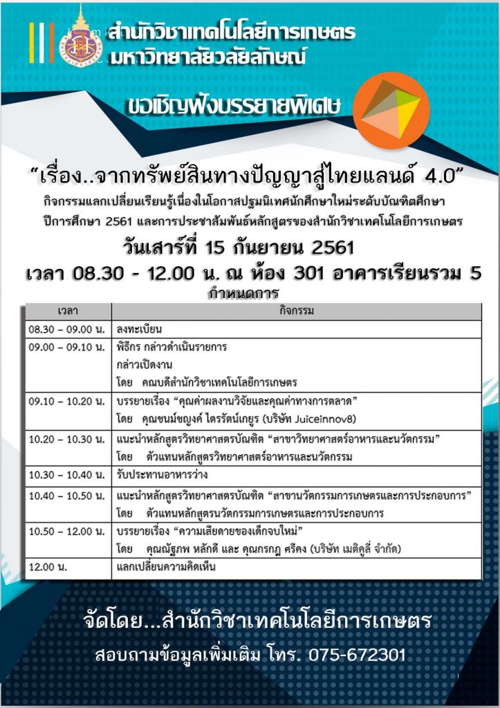 ขอเชิญฟังบรรยายพิเศษเรื่อง “จากทรัพย์สินทางปัญญาส
