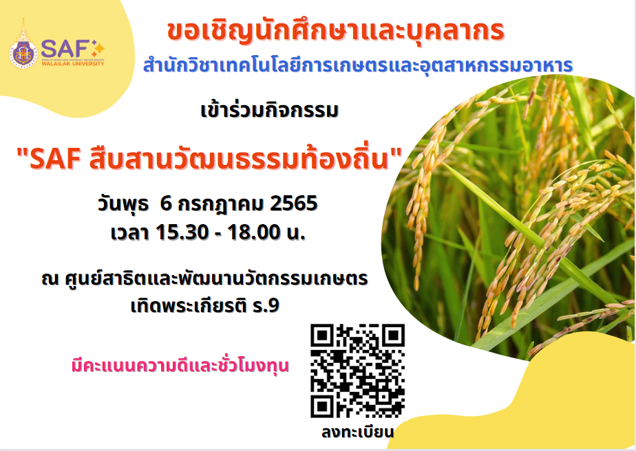 เมื่อวันที่ 4 ตุลาคม 2564 สำนักวิชาเทคโนโลยีการเกษตรได้ […]