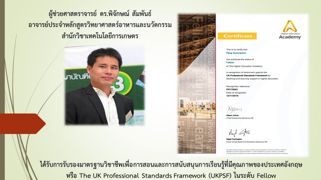 ผู้ช่วยศาสตราจารย์ ดร.พิจักษณ์ สัมพันธ์ ได้รับการรับรองมาตรฐาน (UKPSF) ในระดับ Fellow Read More »
