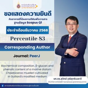 สำนักวิชาเทคโนโลยีการเกษตรและอุตสาหกรรมอาหาร ขอแสดงความยินดีกับคณาจารย์ ในโอกาสได้รับการตีพิมพ์บทความวิจัยระดับนานาชาติ บนฐานข้อมูล Scopus ระดับ Q1 (ธันวาคม 2568) มกราคม 13, 2026 อ่านเพิ่มเติม »