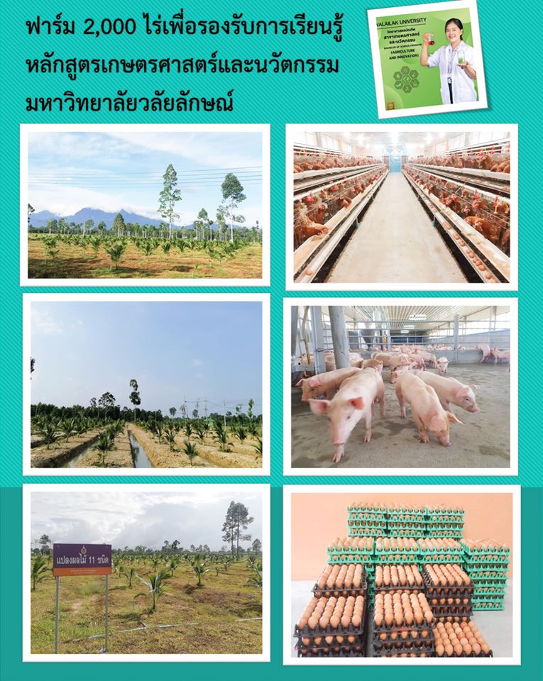 The growth of smart farms at Walailak University, on an area of thousands of rai, which consists of 11 economic plant plots, 4,500 egg farms, 650 swine farms.