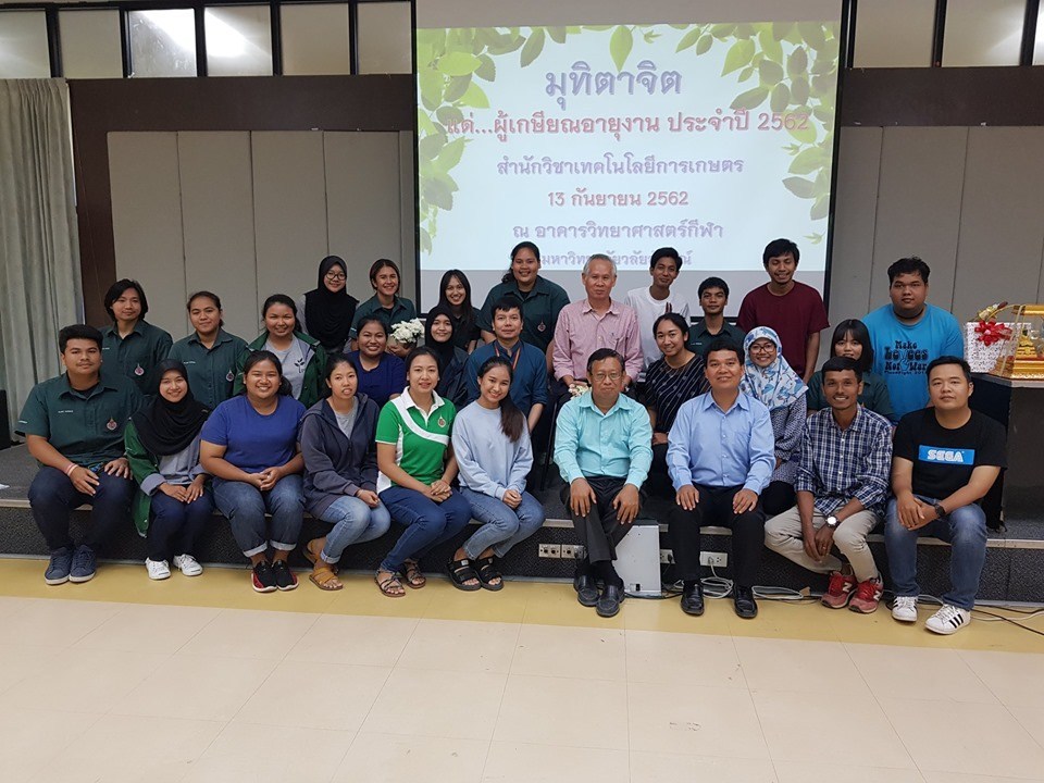 On 13 September 2019, the School of Agricultural Technology organized the annual meeting 2019 at the Sports Science Building, graced by retired faculty professors including Prof.Dr. Wanna Choorit, Assoc.Prof.Dr. Montree Issarakraisila, Asst.Prof.Dr. Niwat Muangkeow, Asst.Prof.Dr. Piyapong Chotipuntu and 150 persons consisting of the school alumni and present students were in attendance.