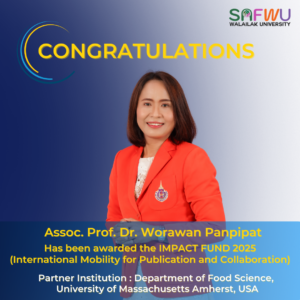 The School of Agricultural Technology and Food Industry would like to extend its congratulations to Associate Professor Dr. Worawan Panpipat, Dean of the School of Agricultural Technology and Food Industry, Walailak University, on her appointment as the “Vice President of the Council of Deans of Agriculture of Thailand,” effective from February 7, 2025, onward.