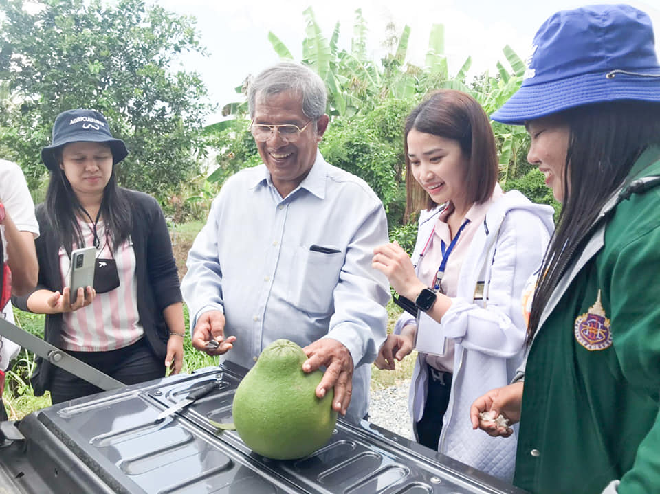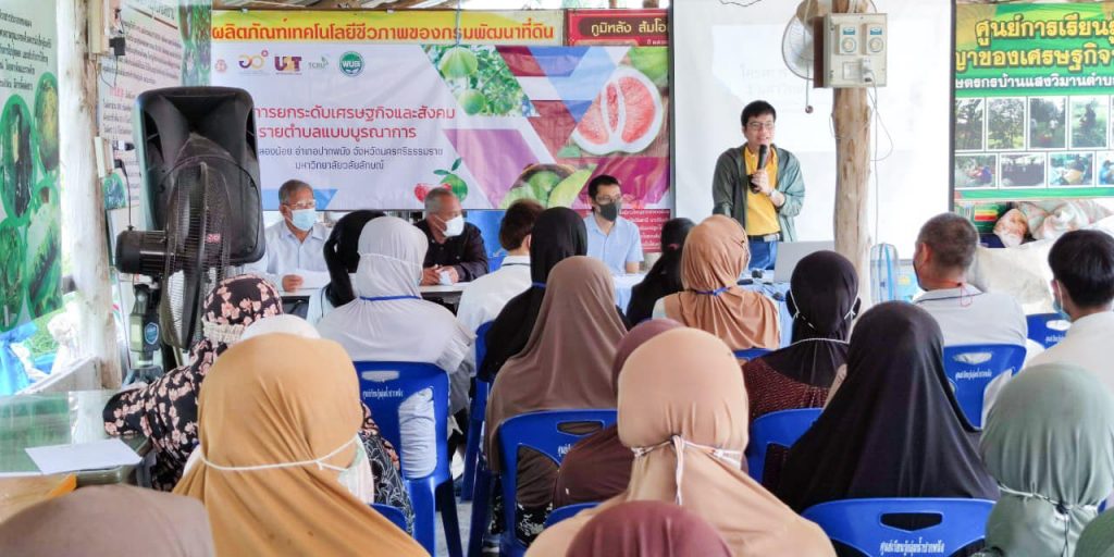 รศ.ดร.วาริน อินทนา และคณะทีมงานศูนย์บริการและผลิตชีวินทรีย์ บ้าน SAF ในโครงการยกระดับเศรษฐกิจและสังคมรายตำบลแบบบูรณาการ