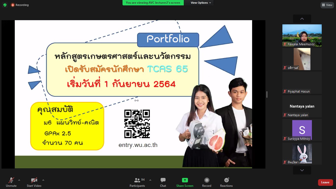ห้องแนะแนว SAF Online ในวันนี้ (23 สิงหาคม 2564) โดยมีคณาจารย์และพี่ๆ มาร่วมกิจกรรมและให้ข้อมูลเกี่ยวกับการเรียนในหลักสูตรเกษตรศาสตร์และนวัตกรรม และหลักสูตรวิทยาศาสตร์อาหารและนวัตกรรม