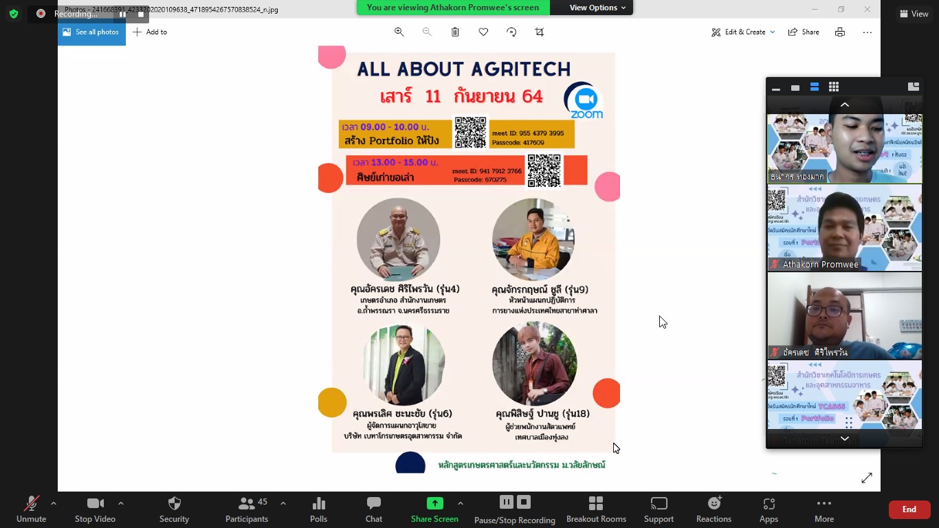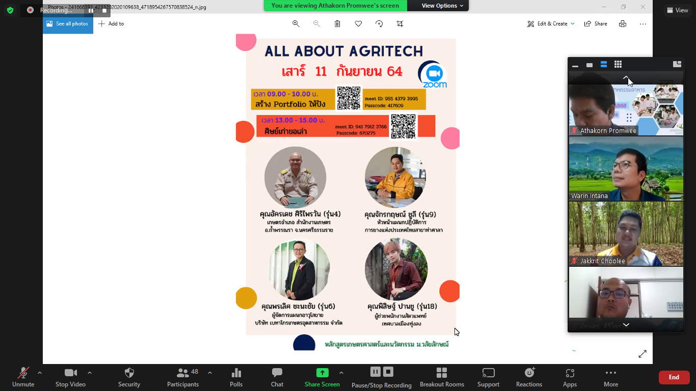 โดยเชิญศิษย์เก่ามาเล่าประสบการณ์การทำงานทางด้านการเกษตร ได้แก่