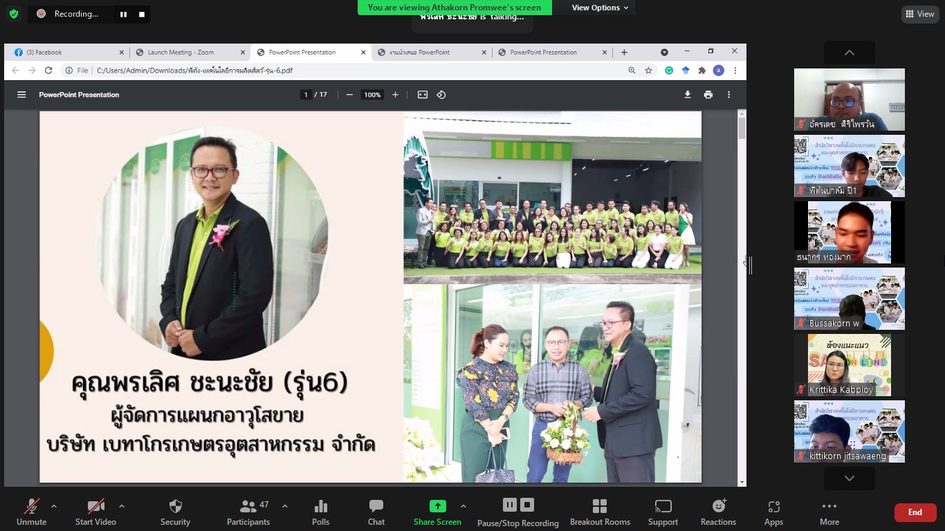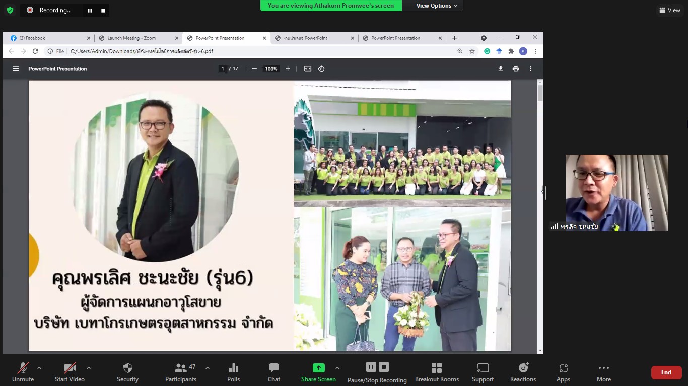 คุณพรเลิศ ชะนะชัย ศิษย์เก่ารุ่นที่ 6 สาขาสัตวศาสตร์