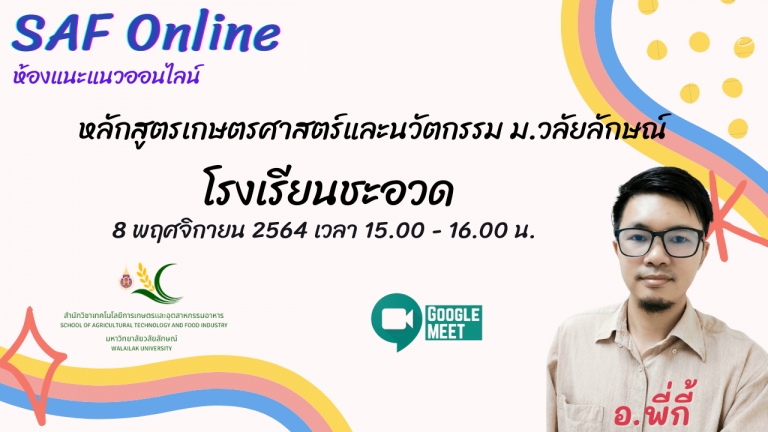 เตรียมพบกับ ห้องแนะแนว SAF Online ในวันจันทร์ที่ 8 พฤศจิกายน 2564 โดยมีอาจารย์พี่อัง อาจารย์พี่อรรถ และอาจารย์พี่กี้ มาแนะแนวการเรียนในมหาวิทยาลัย และให้ข้อมูลหลักสูตรเกษตรศาสตร์และนวัตกรรม