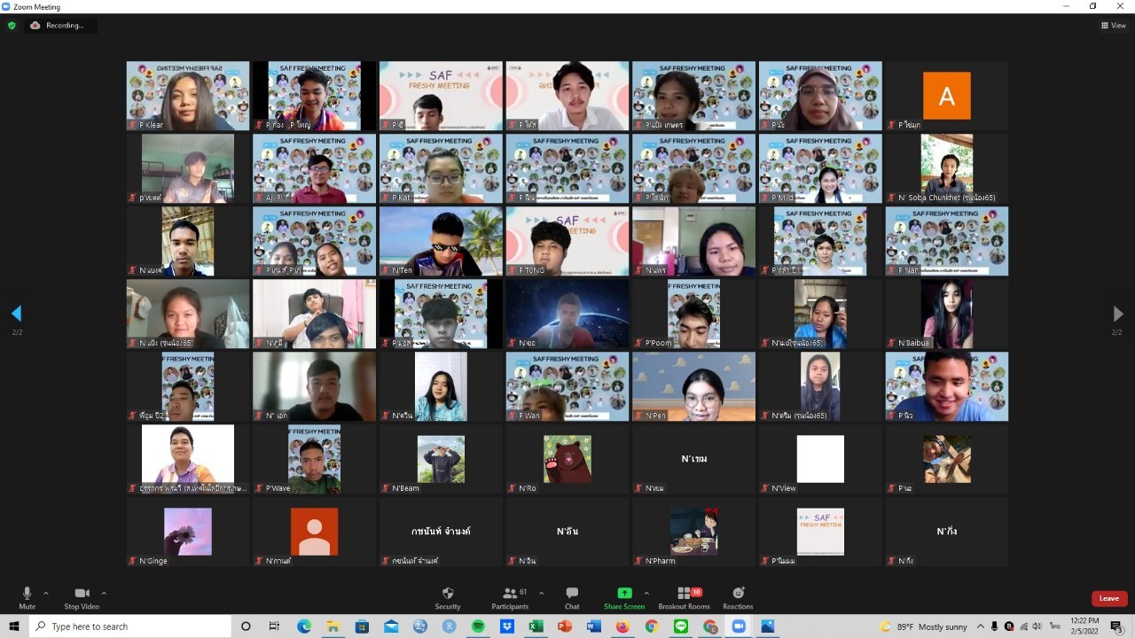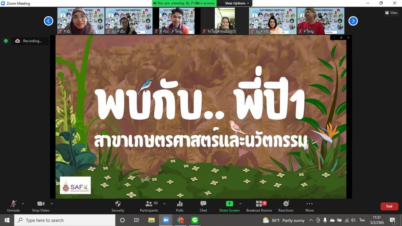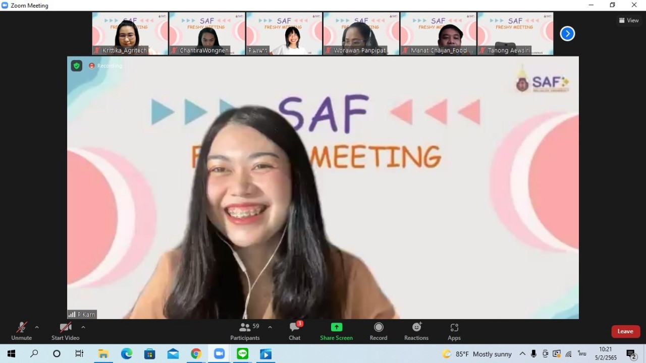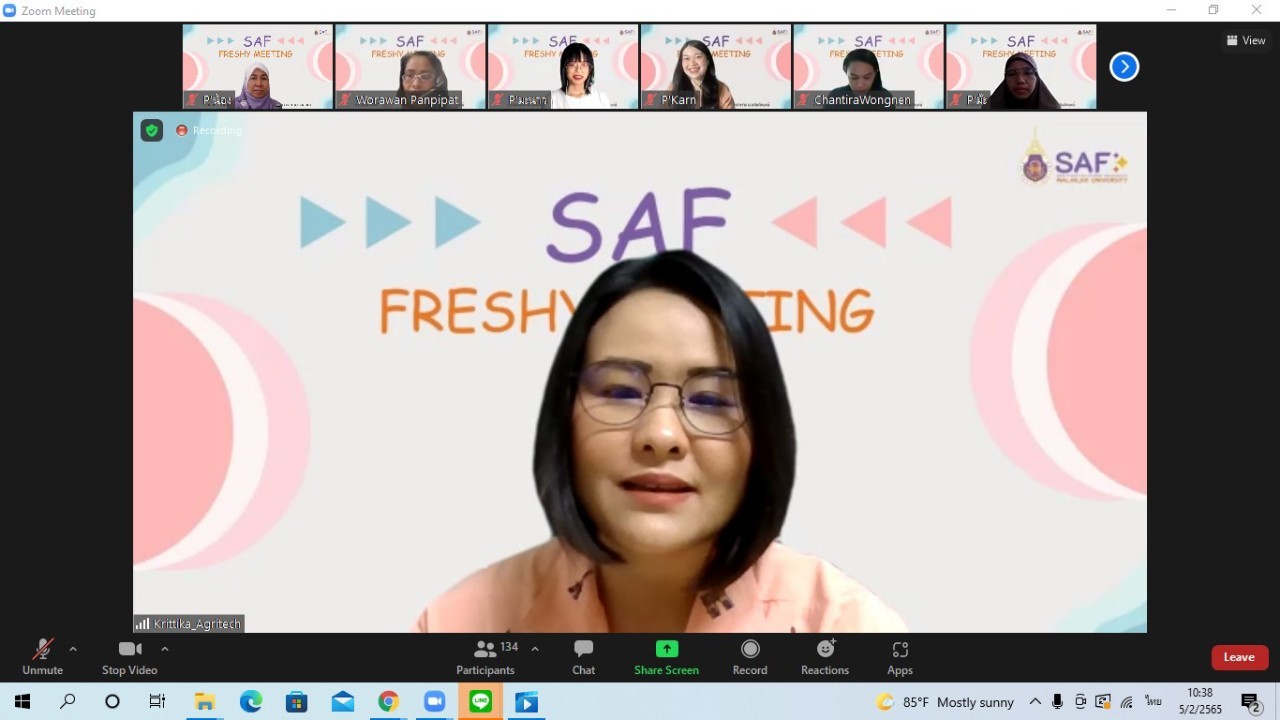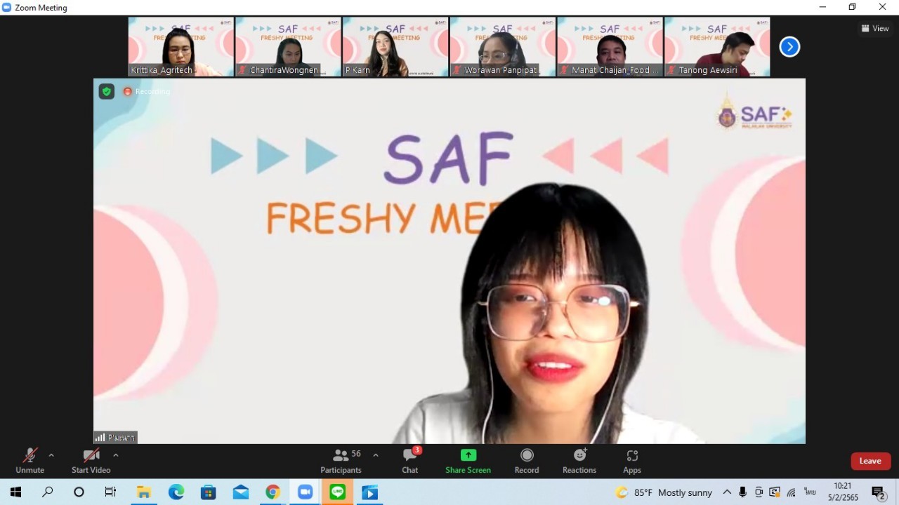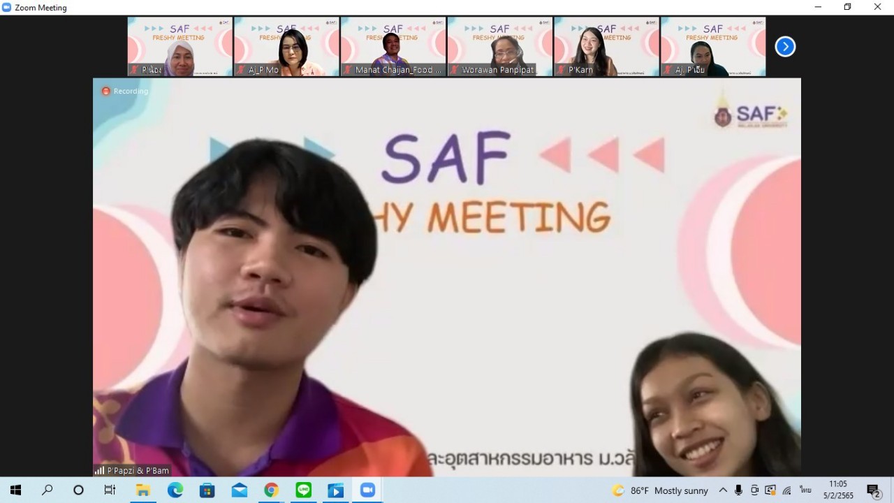 เมื่อวันเสาร์ที่ 5 กุมภาพันธ์ 2565 สำนักวิชาเทคโนโลยีการเกษตรและอุตสาหกรรมอาหาร ได้จัดกิจกรรม SAF Freshy Meeting 2022