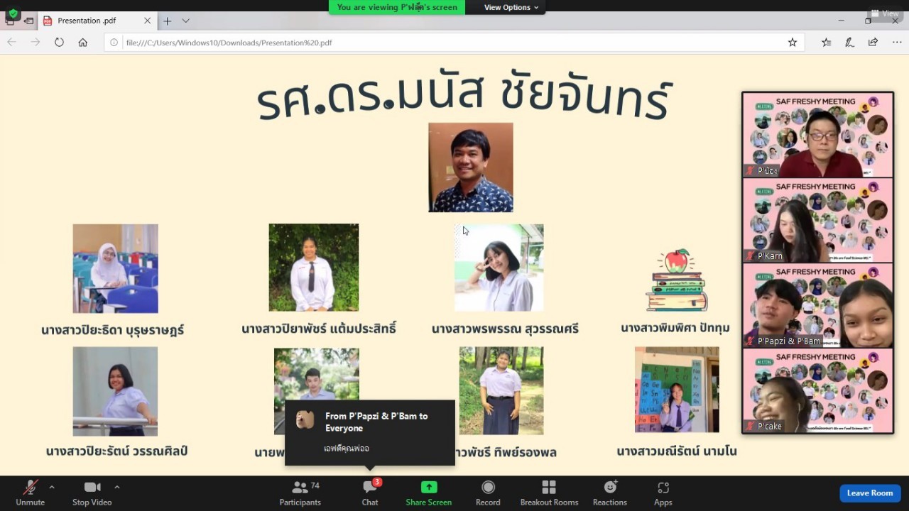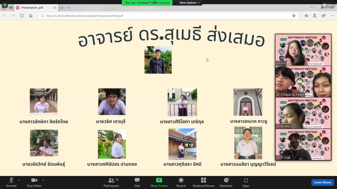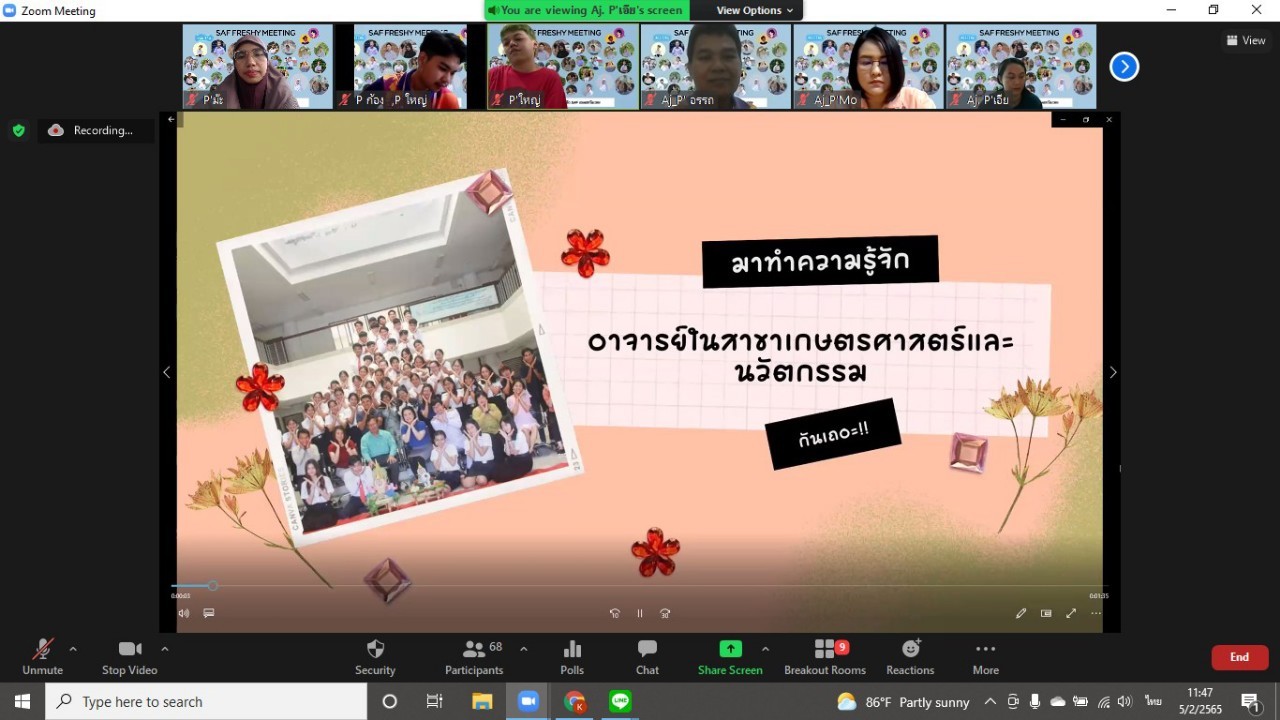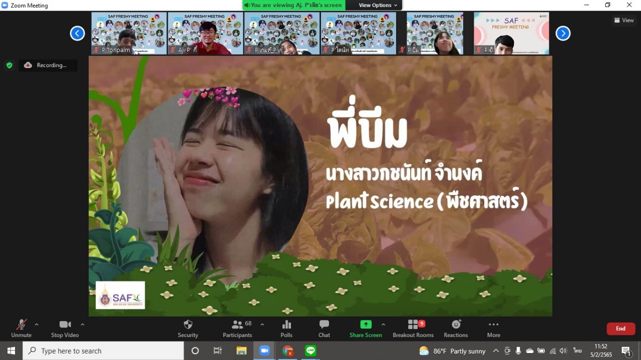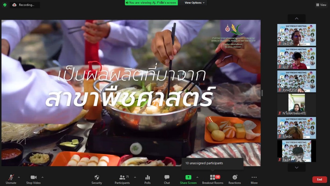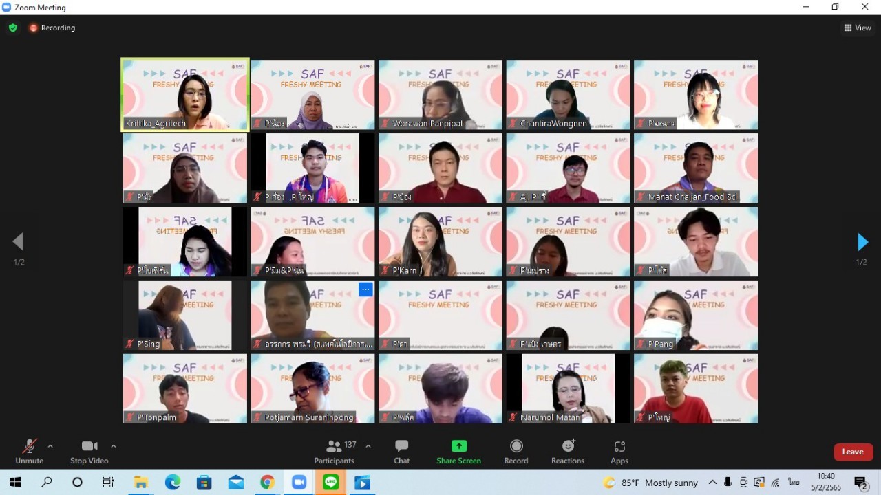 เมื่อวันเสาร์ที่ 5 กุมภาพันธ์ 2565 สำนักวิชาเทคโนโลยีการเกษตรและอุตสาหกรรมอาหาร ได้จัดกิจกรรม SAF Freshy Meeting 2022