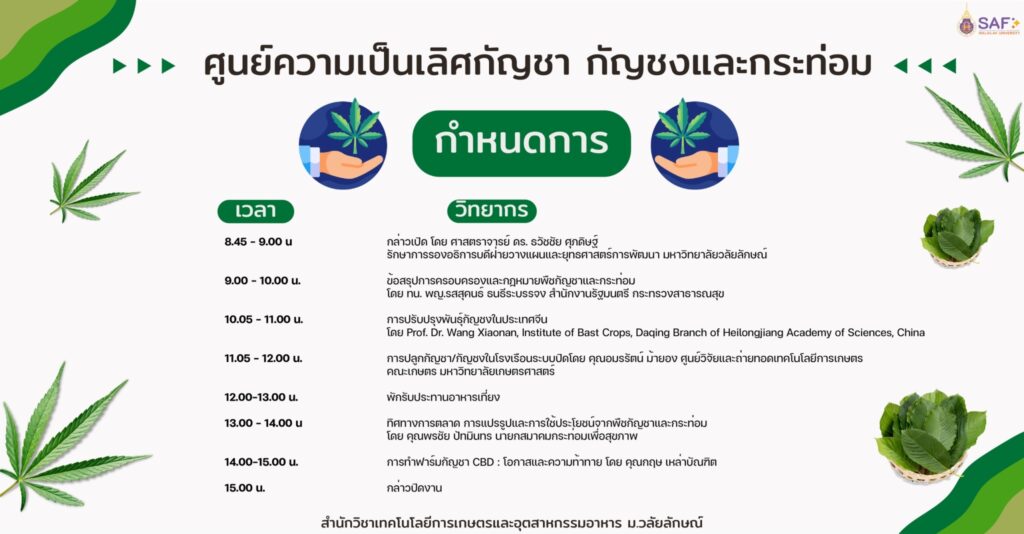 สัมมนาออนไลน์เรื่อง “การจัดการแปลงปลูกและการใช้ประโยชน์ กัญชา กัญชง และกระท่อม ทางการแพทย์