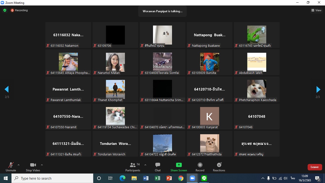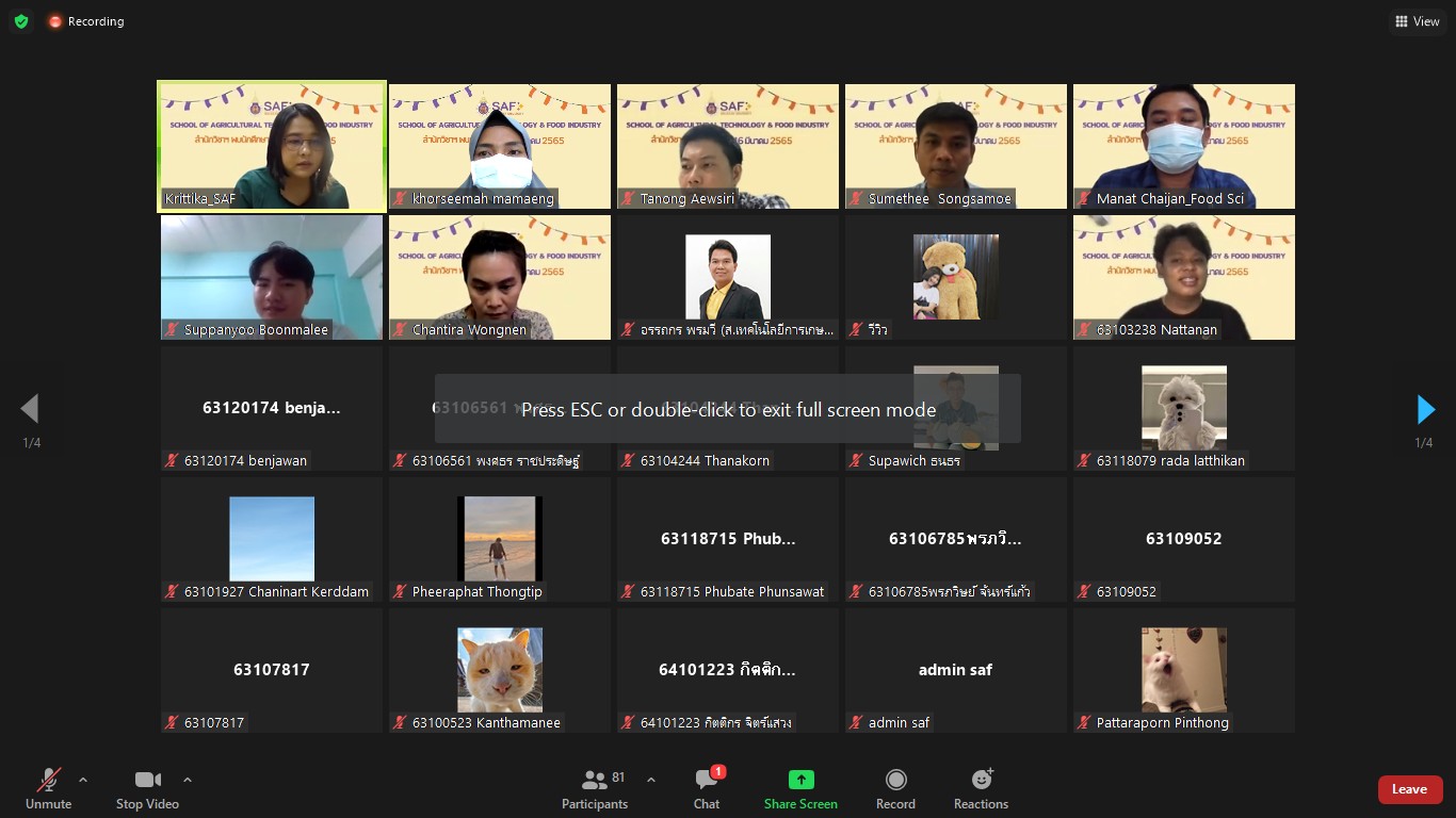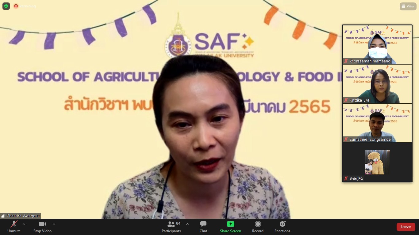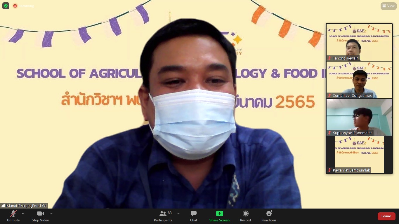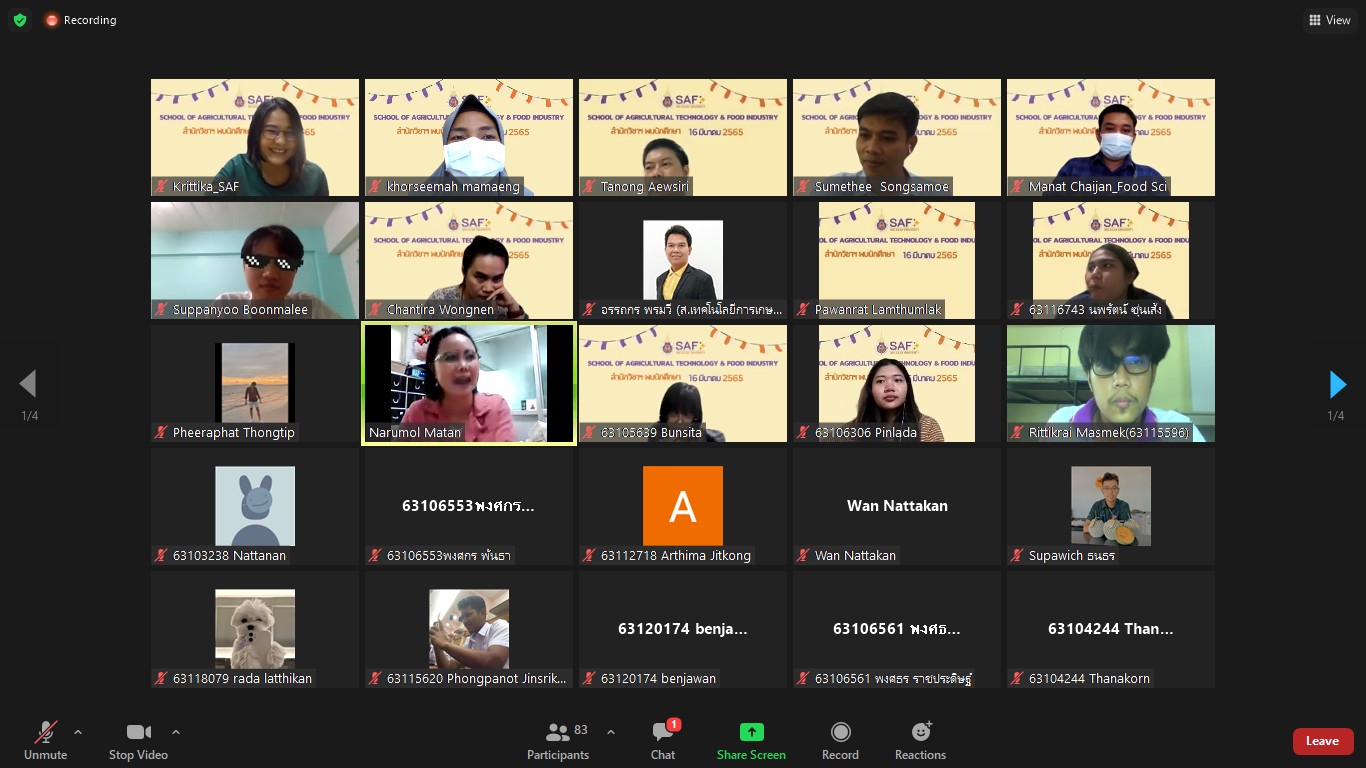 เมื่อวันที่ 16 มีนาคม 2565 สำนักวิชาเทคโนโลยีการเกษตรและอุตสาหกรรมอาหารได้จัดกิจกรรมสำนักวิชาพบนักศึกษา ของภาคการศึกษาที่ 3/2564 ผ่านทางออนไลน์ zoom meeting