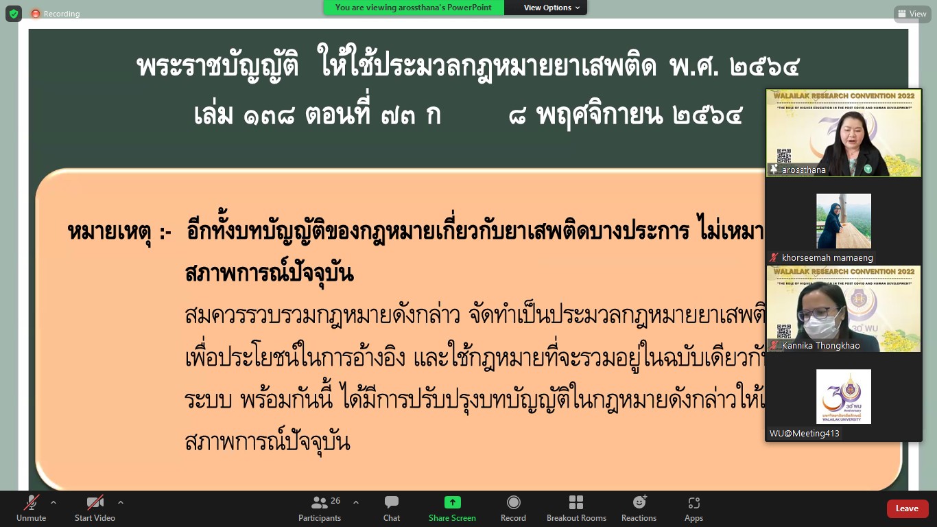 1. หัวข้อ “ข้อสรุปการครอบครองและกฎหมายพืชกัญชาและกระท่อม”