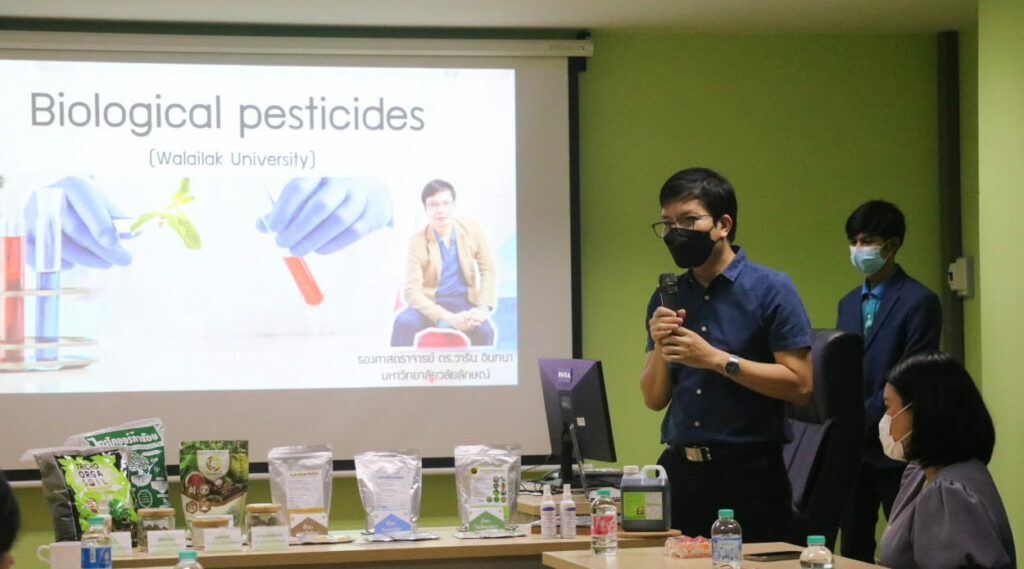 เมื่อวันที่ 6-7 กรกฎาคม 2565 รศ.ดร.วาริน อินทนา หัวหน้าศูนย์ผลิตและบริการชีวินทรีย์เกษตร ม.วลัยลักษณ์ และ อ.ดร.กฤติกา กาบพลอย รักษาการแทนรองคณบดี สำนักวิชาเทคโนโลยีการเกษตรฯได้มีโอกาสต้อนรับคณะดูงานจากมูลนิธิโครงการหลวงเชียงใหม่และคณะสถานฑูตใต้หวันมาแลกเปลี่ยนความรู้ด้านชีวภัณฑ์กำจัดศัตรูพืชและการบริการเกษตรกรพร้อมทั้งลงพื้นที่สวนทุเรียนและมังคุด