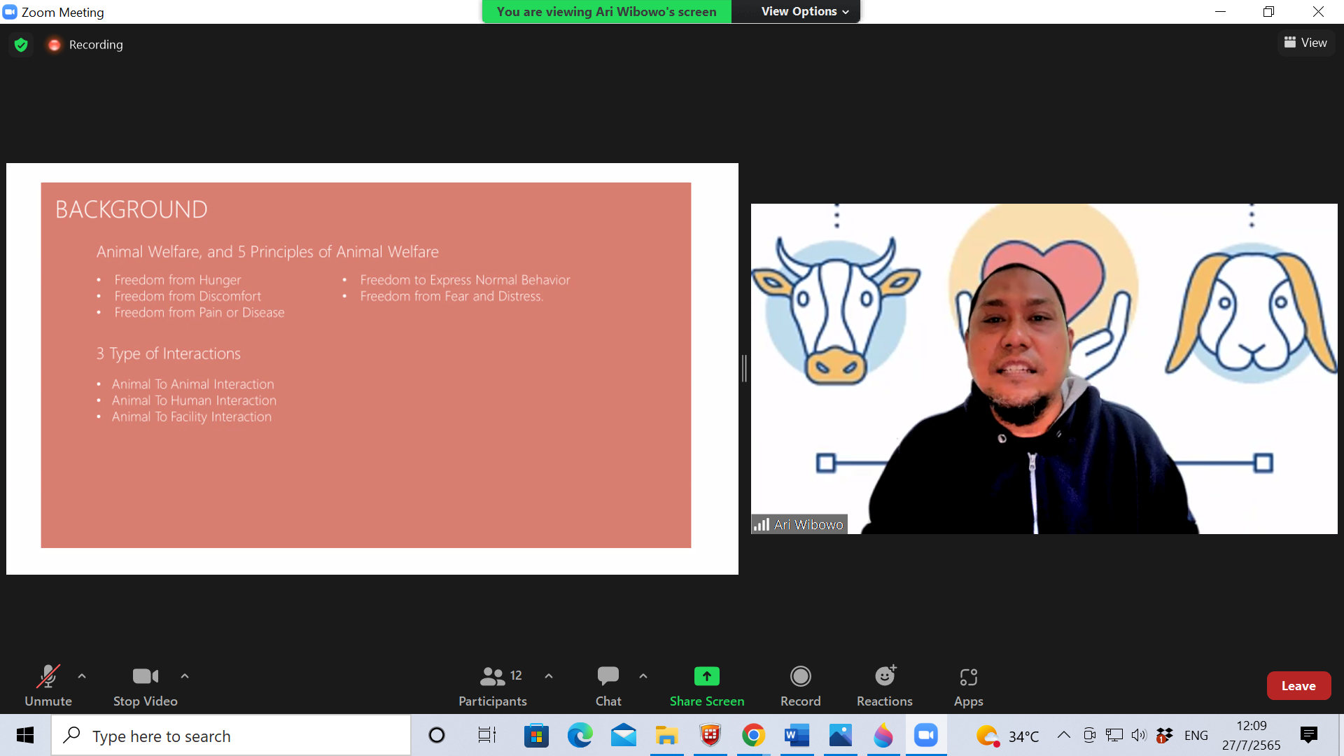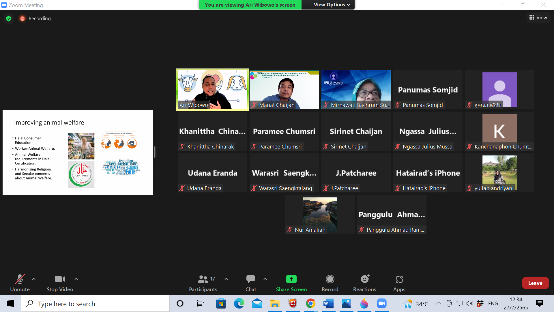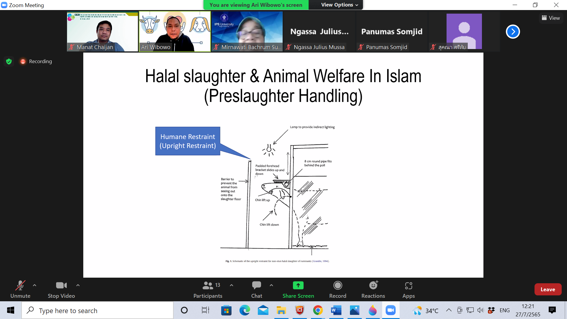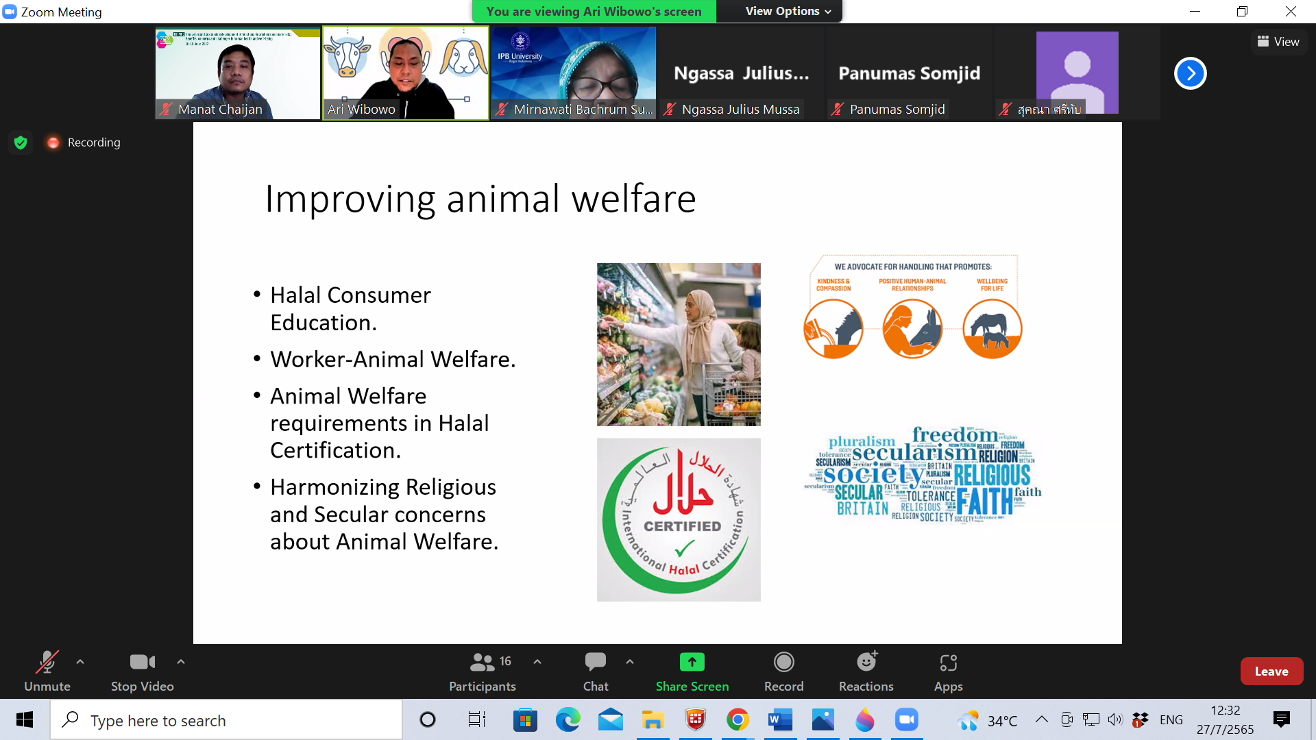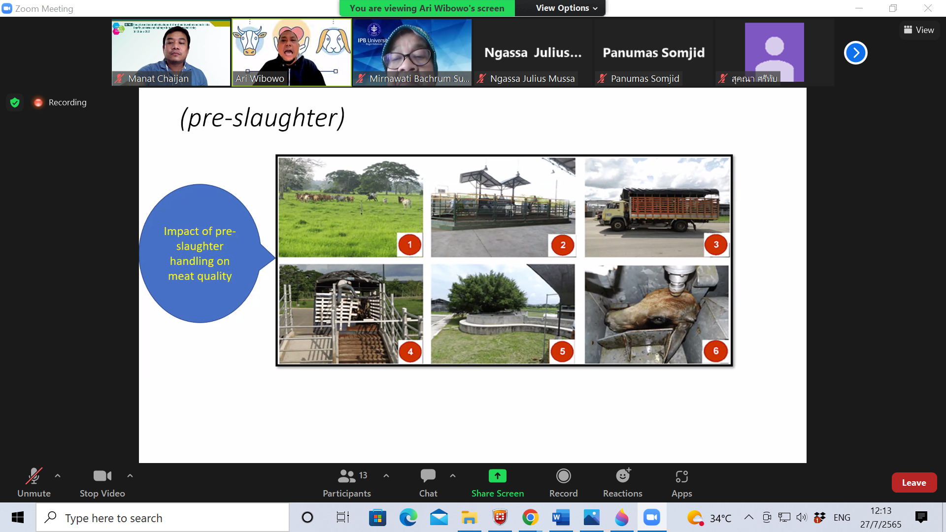 ภาพบรรยากาศ กิจกรรมส่งเสริมศักยภาพการวิจัยและความเป็นนานาชาติ ของสำนักวิชาเทคโนโลยีการเกษตรและอุตสาหกรรมอาหาร (SAF Research Forum) เมื่อวันที่ 27 กรกฎาคม 2565 ที่ผ่านมาหัวข้อการบรรยาย Animal Welfare in Halal Meat Production
