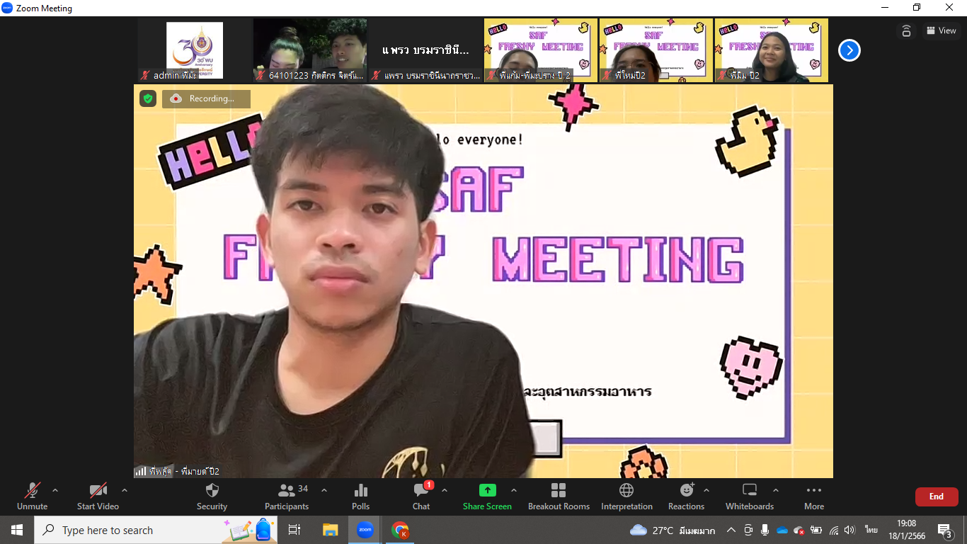 เมื่อวันพุธที่ 18 มกราคม 2566 สโมสรนักศึกษา สำนักวิชาเทคโนโลยีการเกษตรและอุตสาหกรรมอาหารจัดกิจกรรม “SAF Freshy Meeting รุ่นพี่พบว่าที่รุ่นน้อง” เป็นกิจกรรมที่รุ่นพี่มาเล่าประสบการณ์ การใช้ชีวิต การเรียนการสอนในมหาวิทยาลัย ให้กับน้องๆ ที่ผ่านการคัดเลือกในรอบ TCAS66