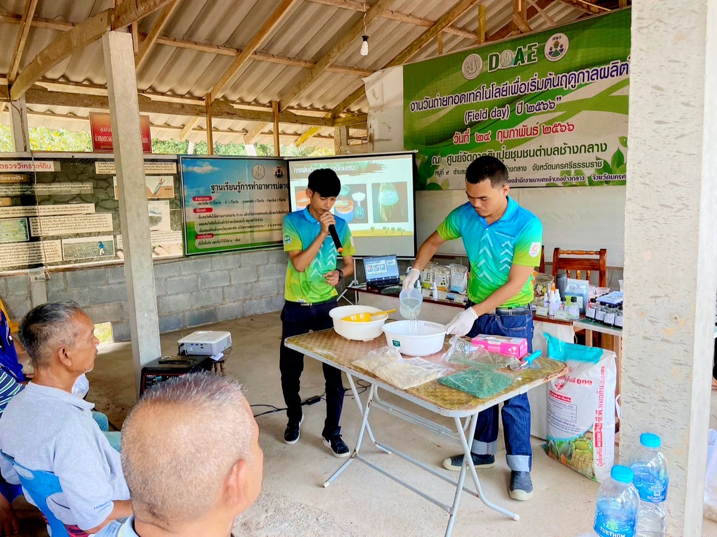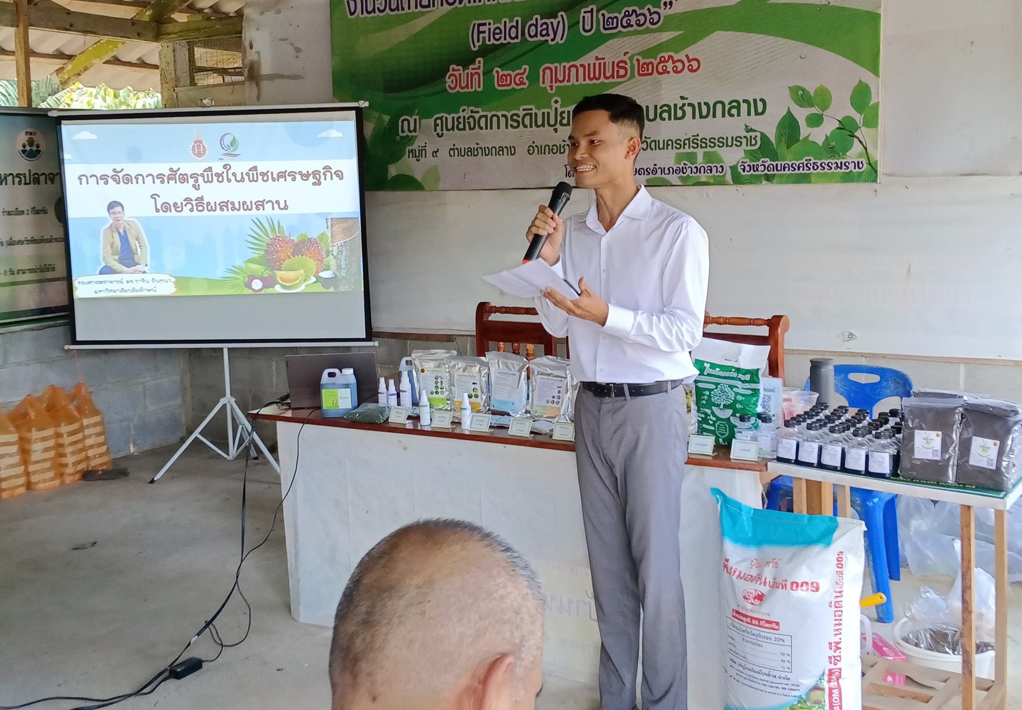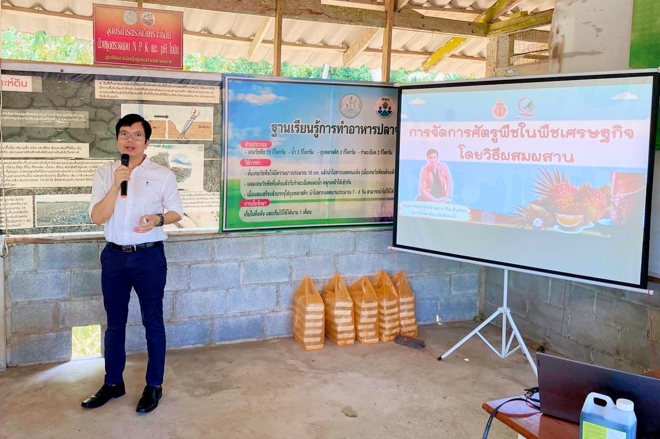 เมื่อวันที่ 5 เมษายน 2567 สำนักวิชาเทคโนโลยีการเกษตรและอุตสาหกรรมอาหาร ร่วมกับศูนย์ผลิตและบริการชีวินทรีย์เกษตร ลงพื้นที่อบรมถ่ายทอดองค์ความรู้แก่เกษตรกรตำบลช้างกลาง โดยมี รศ.ดร.วาริน อินทนา บรรยายหัวข้อ” การจัดการศัตรูพืชยางพารา และสาธิตการเลี้ยงเชื้อราไตรโคเดอร์มาชนิดสด การผลิตชีวภัณฑ์ไตรโคเดอร์มาชนิดน้ำ และการผลิตปุ๋ยอินทรีย์ผสมเชื้อราไตรโคเดอร์มา”