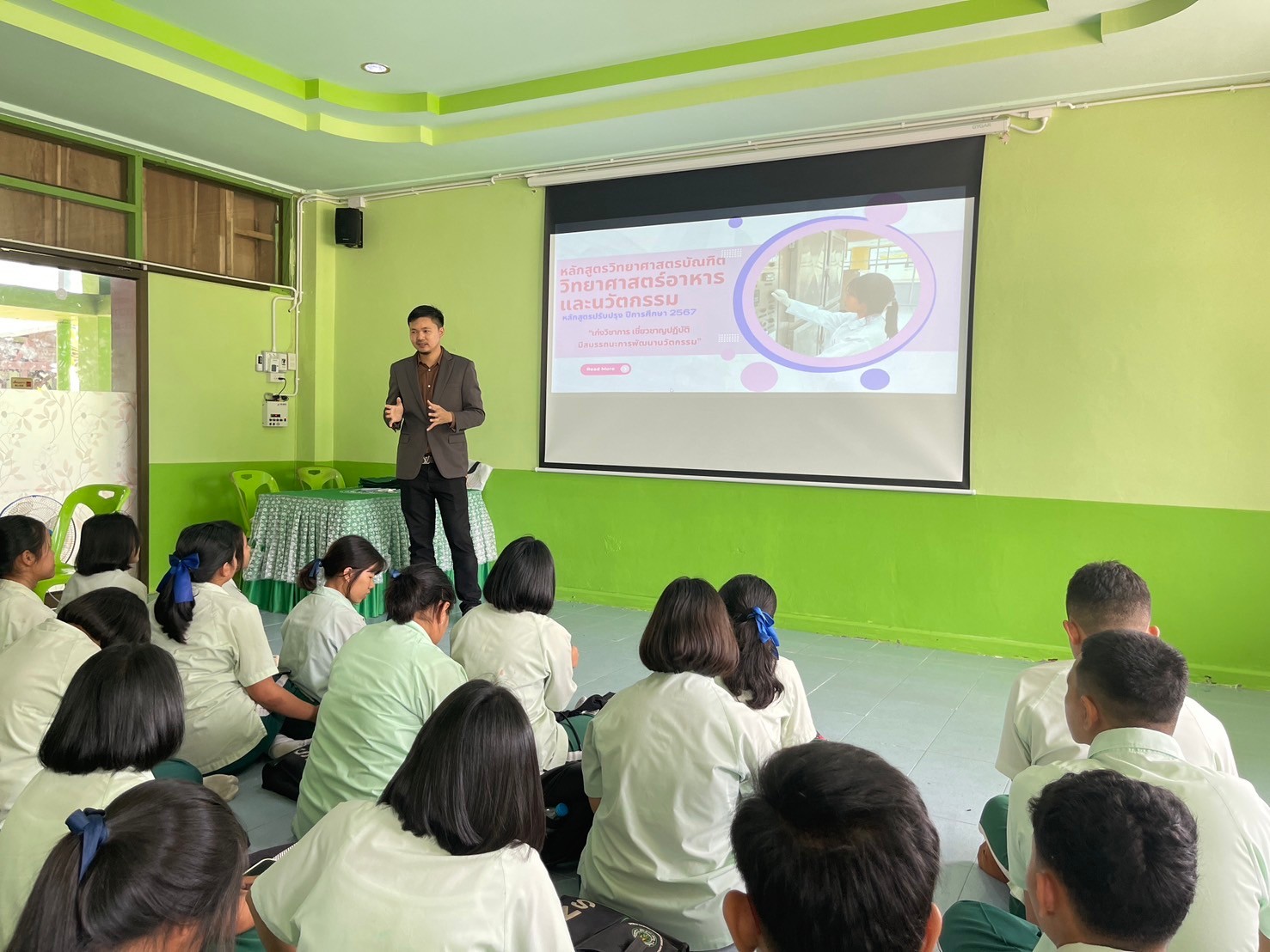 วันที่ 5 กันยายน 2567 สำนักวิชาเทคโนโลยีการเกษตรและอุตสาหกรรมอาหาร จัดกิจกรรม SAF to School ประชาสัมพันธ์หลักสูตรให้กับน้องๆ ม.6 ที่โรงเรียนปัญญาสารธรรมมูลนิธิ จังหวัดนครศรีธรรมราช