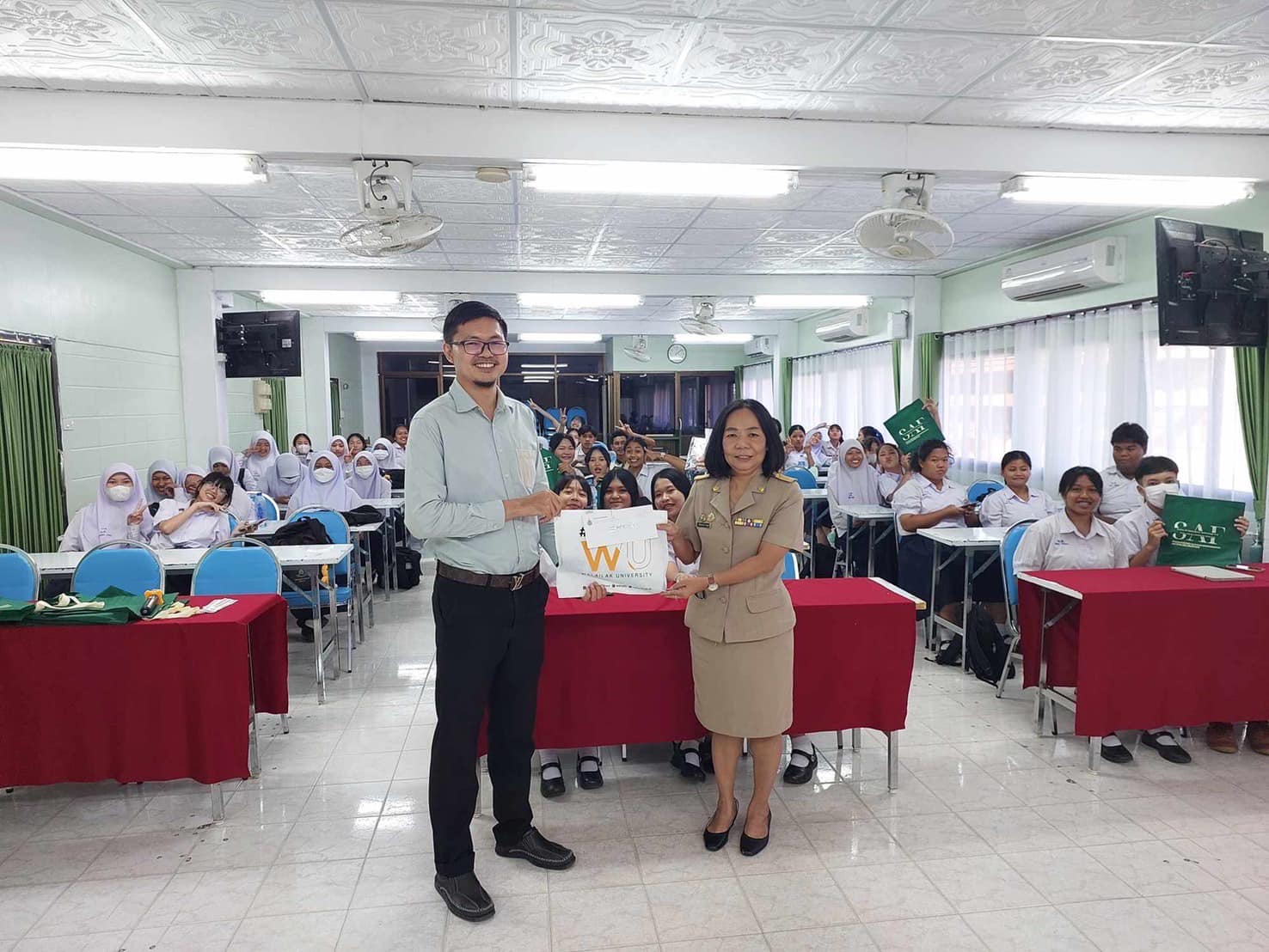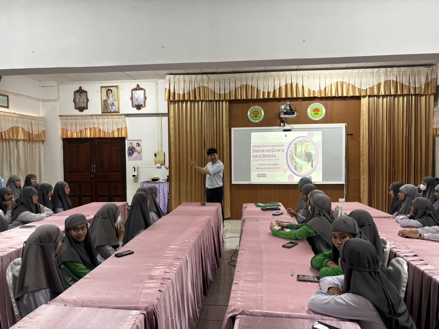 วันที่ 9-13 กันยายน 2567 สำนักวิชาเทคโนโลยีการเกษตรและอุตสาหกรรมอาหาร จัดกิจกรรม SAF to School ประชาสัมพันธ์หลักสูตรให้กับน้องๆ ม.6 ที่โรงเรียน 3 จังหวัดชายแดนภาคใต้ ได้แก่ โรงเรียนนราธิวาส โรงเรียนนราสิกขาลัย โรงเรียนอัตตัรกียะห์อสลามียะห์ โรงเรียนสตรียะลา โรงเรียนคณะราษฎร์บำรุง และโรงเรียนเดชะปัตตนยานุกูล จังหวัดปัตตานี