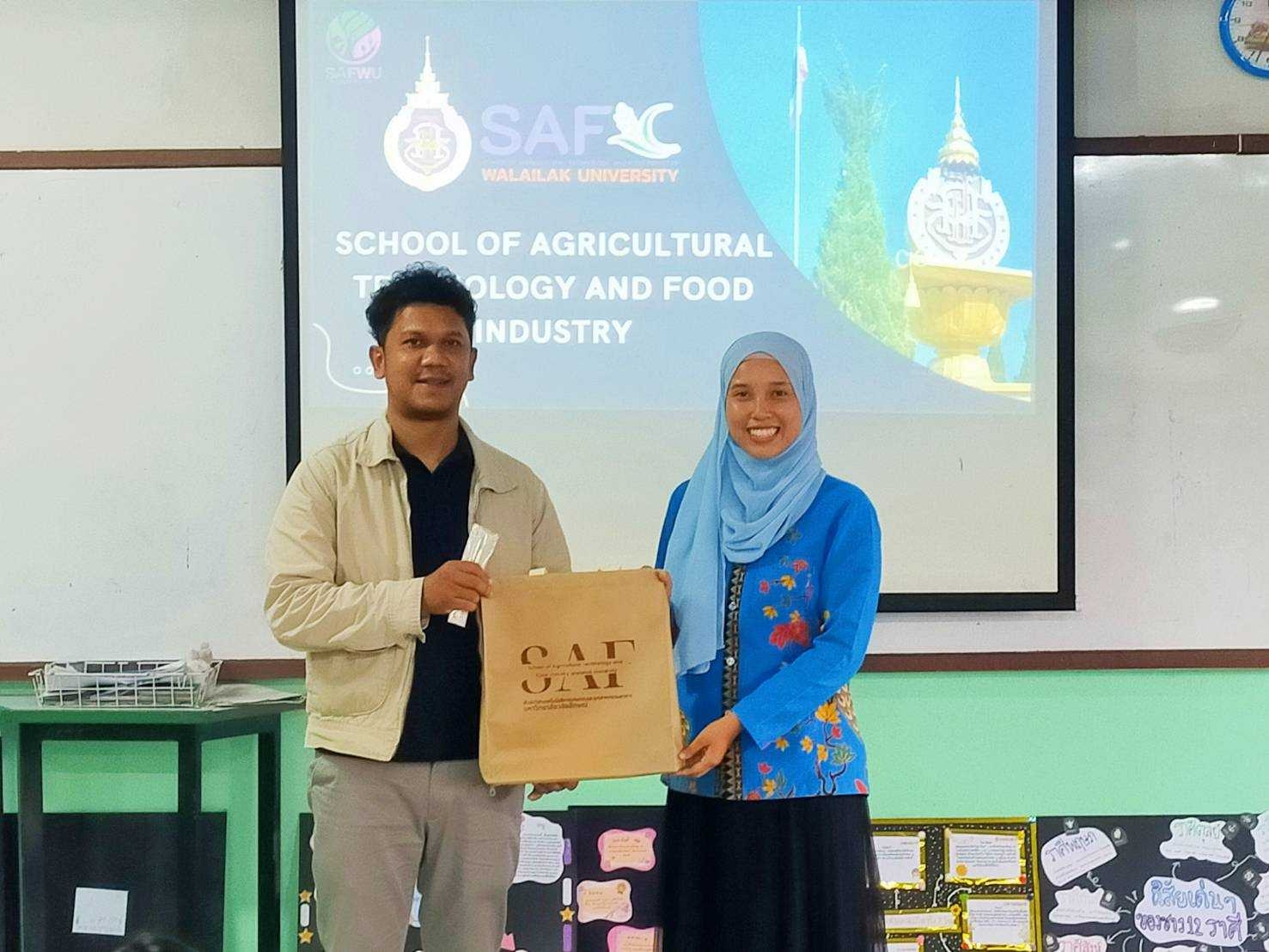 วันที่ 27-28 พฤศจิกายน 2567 คณาจารย์สำนักวิชาเทคโนโลยีการเกษตรและอุตสาหกรรมอาหารเข้าร่วมประชาสัมพันธ์หลักสูตรให้กับน้องๆ ม.6 ที่โรงเรียนมัธยมเทศบาลวัดท่าแพ อ.ทุ่งสง โรงเรียนรัษฎา โรงเรียนบางดีวิทยาคม โรงเรียนสภาราชินี 2 และโรงเรียนน้ำผุด จังหวัดตรัง