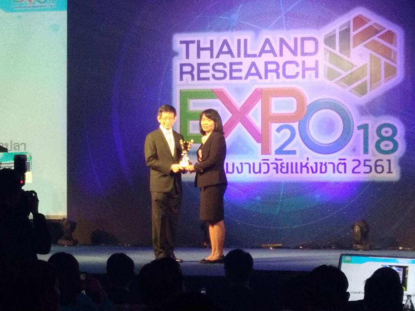 ผลงานเรื่อง “เจลทำความสะอาดมือเพื่อกำจัดกลิ่นคาวปลาและอาหารทะเล” ได้รับรางวัลข้อเสนอโครงการนวัตกรรมสายอุดมศึกษาระดับ “ดีมาก” ซึ่งได้รับโล่รางวัล เหรียญเงิน และเงินรางวัลจำนวน 15,000 บาท ในกลุ่มอาหารและผลิตภัณฑ์เพื่อสุขภาพ (Food and Health Products) โดยมี รองศาสตราจารย์ ดร.วรวรรณ พันพิพัฒน์ เป็นผู้รับมอบรางวัลจาก ดร.กอบศักดิ์ ภูตระกูล รัฐมนตรีประจำสำนักนายกรัฐมนตรี ภายในงาน “มหกรรมงานวิจัยแห่งชาติ (Thailand Research Expo 2018)” เมื่อวันที่ 12 สิงหาคม 2561 ณ โรงแรมเซ็นทาราแกรนด์ และบางกอกคอนเวนชันเซ็นเตอร์ เซ็นทรัลเวิลด์