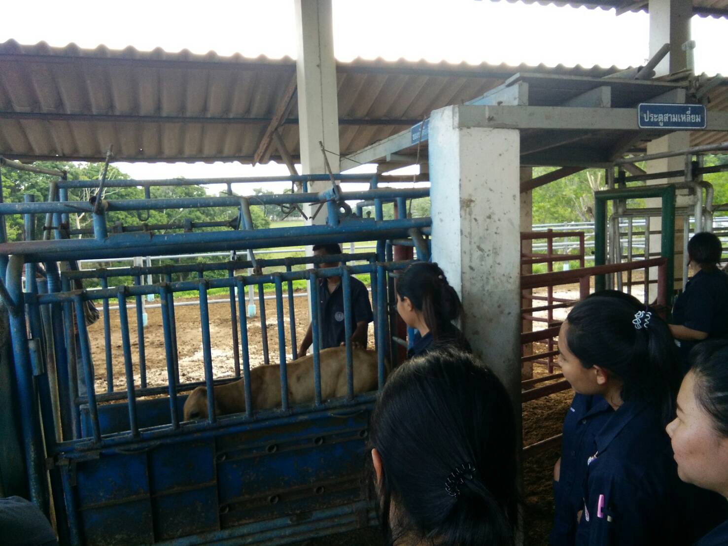 นักศึกษาสัตวศาสตร์ชั้นปีที่ 3 เรียนปฏิบัติการนอกห้องเรียน ที่คณะเกษตรศาสตร์ มทร.ศรีวิชัย นครศรีธรรมราช ในรายวิชา ANS-360 สุขศาสตร์ของสัตว์และการควบคุมโรค เรียนรู้เรื่อง การใช้อุปกรณ์ การใช้ซองบังคับ การชั่งน้ำหนัก การฉีดยา การผสมอาหาร ฯลฯ