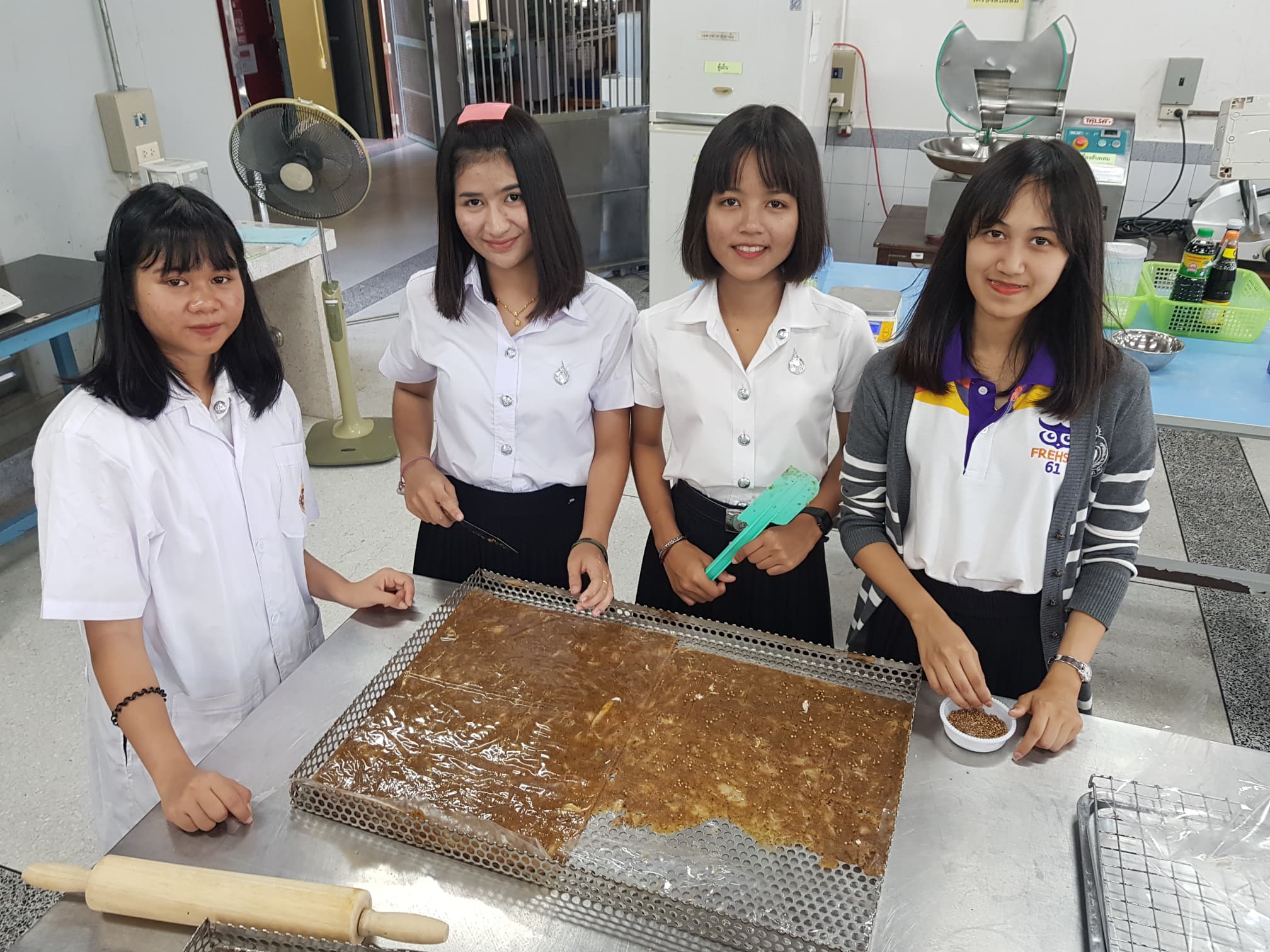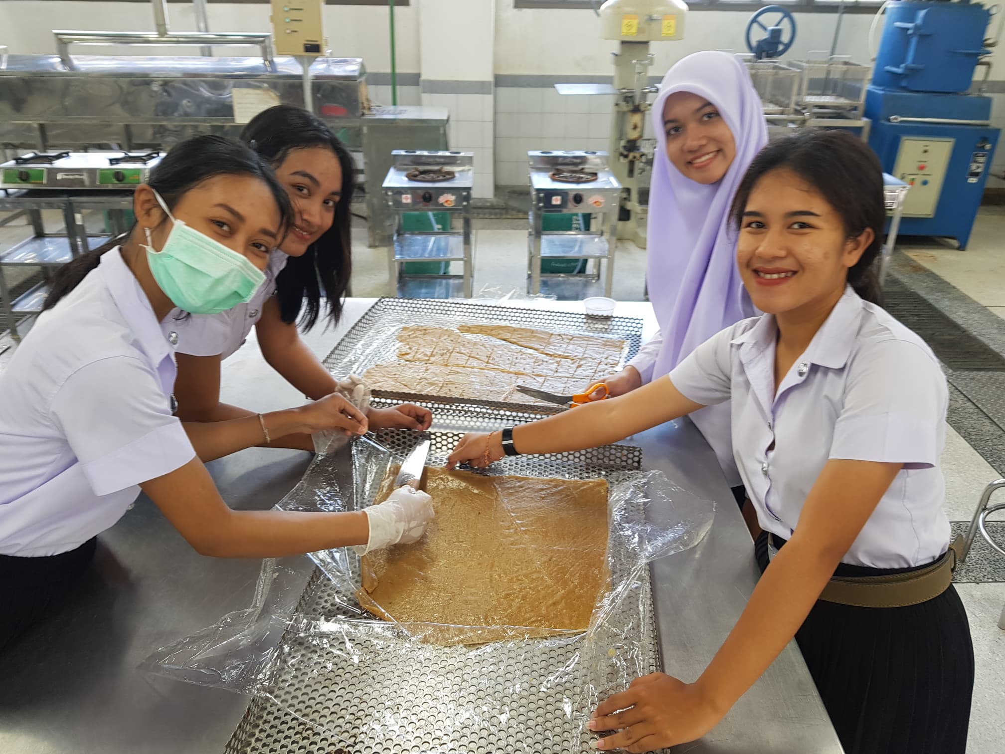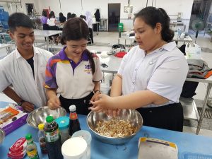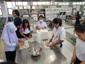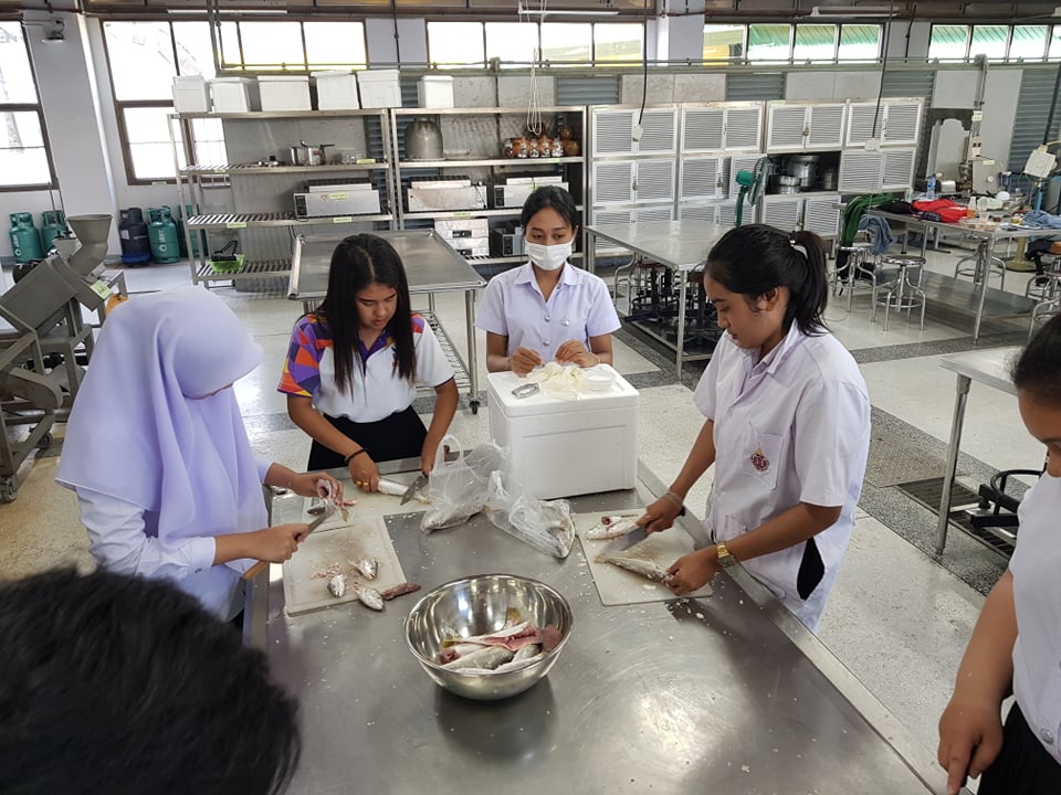 บรรยากาศการเรียนวิชาการแปรรูปสัตว์น้ำของนักศึกษาชั้นปีที่ 1 นักศึกษาได้ลงมือทำ ผลิตภัณฑ์ปลาสวรรค์