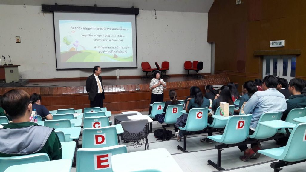 สำนักวิชาเทคโนโลยีการเกษตร จัดกิจกรรม “คณบดีและคณาจารย์พบนักศึกษา ประจำภาคเรียนที่ 1 ปีการศึกษา 2562 ” ครั้งที่ 1 ในวันศุกร์ที่ 5 กรกฎาคม 2562 เวลา 17.00 น. ณ ห้อง 301 อาคารเรียนรวม 3
