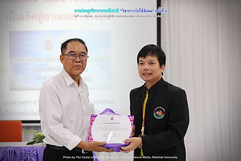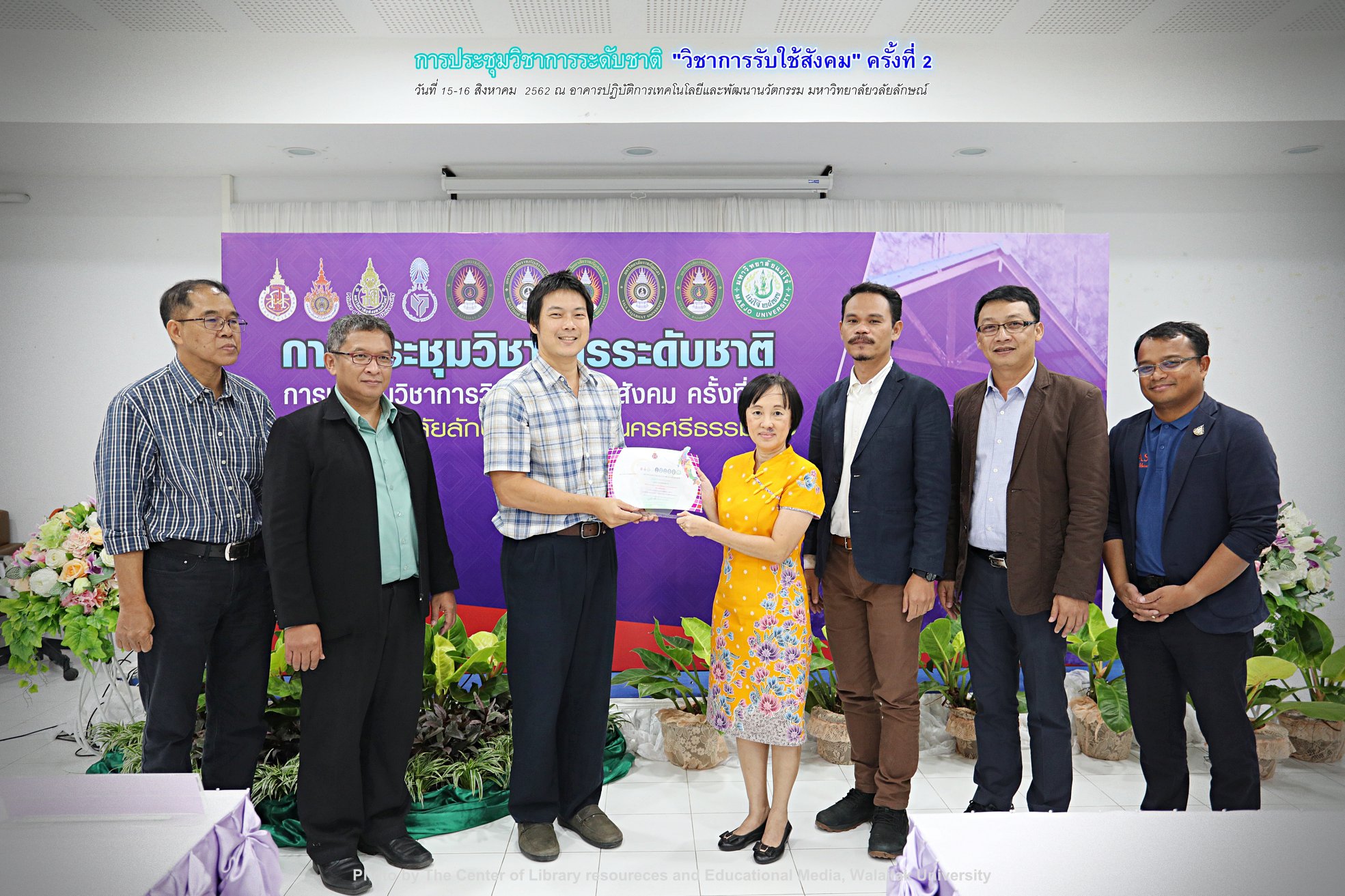 ในงานประชุมวิชาการระดับชาติวิชาการรับใช้สังคมครั้งที่ 2 ณ มหาวิทยาลัยวลัยลักษณ์ ในระหว่างวันที่ 15-16 สิงหาคม 2562