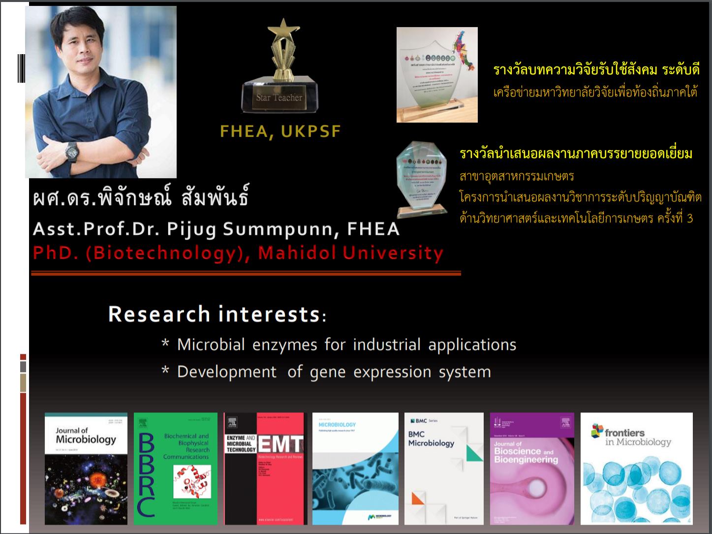 🌷งานวิจัยนี้ทำโดยตัดต่อยีนที่ช่วยในกระบวนการม้วนพับของโปรตีนให้ถูกต้องมากยิ่งขึ้น และแสดงออกร่วมกับยีนที่ต้องการภายใต้การควบคุมของโปรโมเตอร์ที่เหมาะสม เพื่อให้ยีสต์สามารถผลิตเอนไซม์หรือโปรตีนที่ม้วนพับได้โครงสร้างที่ถูกต้อง ทำงานได้และผลิตได้ในปริมาณที่มากเพียงพอตามความต้องการ สามารถอ่านรายละเอียดได้จากผลงานตีพิมพ์ในฐานข้อมูลนานาชาติและ ISI