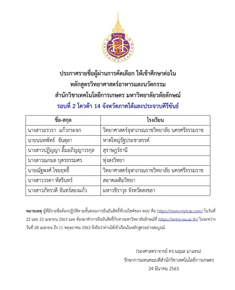 😍ขอแสดงความยินดีกับน้องๆที่ผ่านการคัดเลือกเข้าศึกษาต่อในหลักสูตรเกษตรศาสตร์และนวัตกรรมและหลักสูตรวิทยาศาสตร์อหารและนวัตกรรม ในรอบ TCAS2 รอบโควต้าพื้นที่