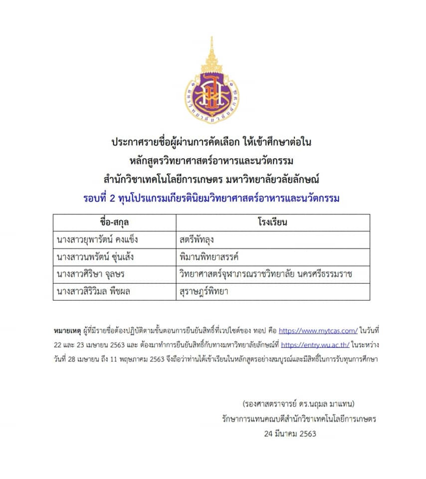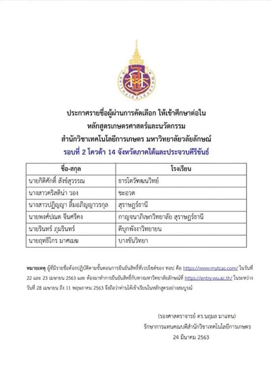 และ 😍ต้องทำการยืนยันสิทธิ์กับทางมหาวิทยาลัยลักษณ์ที่ https://entry.wu.ac.th/ ในระหว่างวันที่ 28 เมษายน ถึง 11 พฤษภาคม 2563 จึงถือว่าท่านได้เข้าเรียนในหลักสูตรอย่างสมบูรณ์และมีสิทธิ์ในการรับทุนการศึกษา (ในกรณีที่ได้รับทุนการศึกษา)