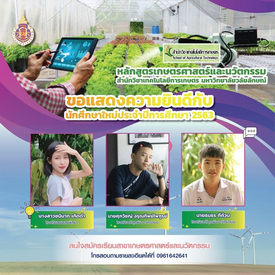 🌹🌹ขอแสดงความยินดีกับน้องๆที่ผ่านการคัดเลือกได้เข้าเรียนในหลักสูตรเกษตรศาสตร์และนวัตกรรม หลักสูตรที่ใช่ ทางเลือกที่ชาญฉลาด การเรียนที่แสนสนุกบนพื้นที่ฟาร์ม 3,000 ไร่ คณาจารย์ที่มีความเข้มแข็งด้านวิชาการ บ้านที่อบอุ่นเป็นพี่ๆน้องๆ ที่นี่สำนักวิชาเทคโนโลยีการเกษตร