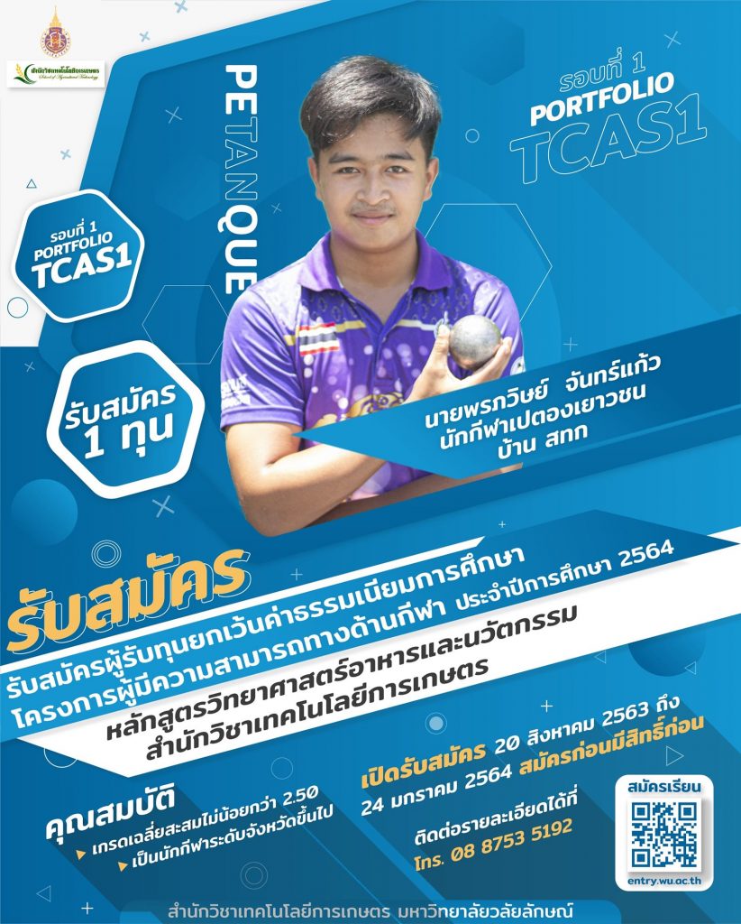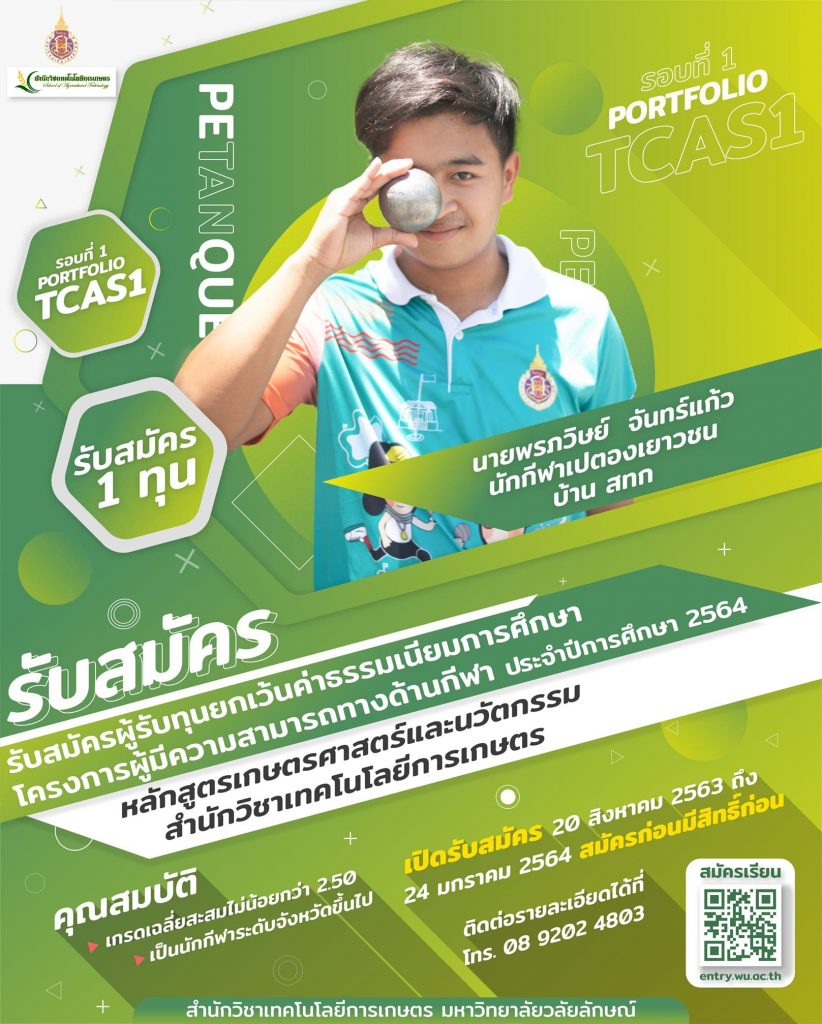 ในรอบ TCAS64 รอบ Portfolio นใจและสมัครได้ที่ https://entry.wu.ac.th/